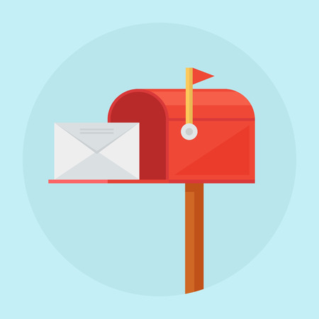 フラット赤いポストのイラストです 赤いポストに黄色い封筒のイラスト素材 ベクタ Image